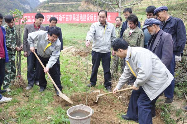 10月23日,長城電工與隴南市武都區(qū)龍壩鄉(xiāng)政府在龍壩鄉(xiāng)張莊村舉行“千畝蘋果園基地”建設(shè)項(xiàng)目栽植儀式,標(biāo)志著長城電工“千畝蘋果園基地”項(xiàng)目一期工程300畝栽植果苗工作正式啟動(dòng)。