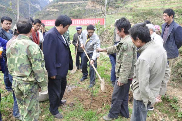 長城電工副總經(jīng)理毛建光出席栽植儀式并代表長城電工講了話,對(duì)在“雙聯(lián)”行動(dòng)中長城電工與龍壩鄉(xiāng)共同建設(shè)“千畝蘋果園基地”建設(shè)項(xiàng)目的重要意義做了進(jìn)一步的闡述,同時(shí)對(duì)當(dāng)期果苗的栽植、后期果園的管理等方面分別提出了意見與建議。