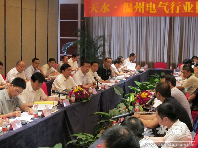 天水市市委常委、政法委書記趙衛(wèi)東,副市長雷鳴,全國民營企業(yè)500強中國人民電器集團董事長、溫州電器行業(yè)協(xié)會會長鄭元豹及溫州部分知名電工電器企業(yè)負責(zé)人、電器行業(yè)協(xié)會相關(guān)領(lǐng)導(dǎo)出席了相關(guān)會議,并分別就進一步加強兩地電器行業(yè)協(xié)會的交流合作,推動兩地電工電器企業(yè)優(yōu)勢互補、共同發(fā)展等進行了深入的座談交流。
