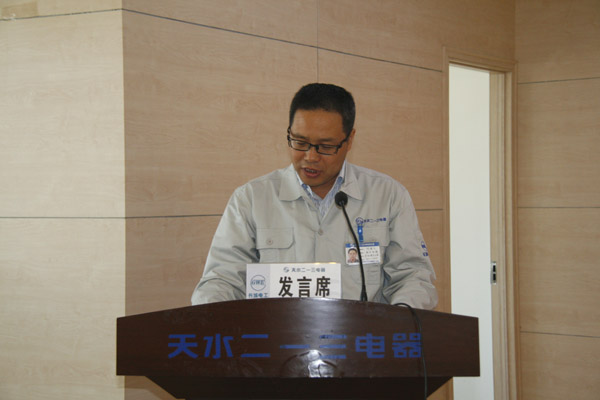長城電工總經(jīng)理、二一三公司董事長張希泰主持大會(huì),并結(jié)合