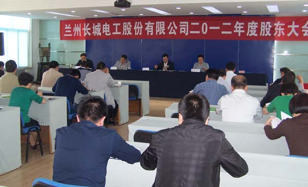 2013年5月10日下午,由董事長(zhǎng)楊林主持,蘭州長(zhǎng)城電工股份有限公司召開2012年年度股東大會(huì),會(huì)議審議并通過了《公司2012 年度報(bào)告正文及摘要 》、《公司2012 年度董事會(huì)工作報(bào)告》、《公司2012 年度監(jiān)事會(huì)工作報(bào)告》、 《公司2012 年度財(cái)務(wù)決算報(bào)告 》、《公司2012 年度利潤(rùn)分配及資本公積金轉(zhuǎn)增股本的預(yù)案》、《公司2012 年度內(nèi)部控制自我評(píng)價(jià)報(bào)告》、《公司2012 年度內(nèi)部控制審計(jì)報(bào)告》、《公司2013 年度財(cái)務(wù)預(yù)算的議案》、《 關(guān)于2013 年度申請(qǐng)獲得銀行綜合授信額度的議案》、《公司2013 年度擬向全資子公司提供信貸業(yè)務(wù)擔(dān)保額度的議案 》、《公司獨(dú)立董事2012 年度述職報(bào)告》等議案。 |