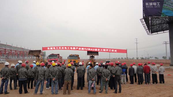 2013年5月15日,長城電工天水電工電器產(chǎn)業(yè)園餐飲文化中心(A2)和職工宿舍樓(A3)項目工程開工儀式在長城電工天水電工電器產(chǎn)業(yè)園舉行。長城電工總經(jīng)理張希泰參加并做重要講話。