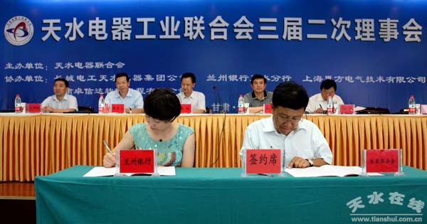 會上,市領導親自為天水天辰電器有限公司等12戶新入會的理事單位頒發(fā)了天水電器工業(yè)聯(lián)合會理事證書。蘭州銀行天水分行行長助理董麗麗、天水電器工業(yè)聯(lián)合會秘書長韋利民代表銀企雙方現(xiàn)場簽署了金融服務合作意向書。會議還創(chuàng)新了辦會模式,安排蘭州銀行天水分行、上海思方電氣技術(shù)有限公司、甘肅卓信達軟件工程有限公司、長城電工物流有限公司、天水力天軟件開發(fā)有限責任公司及天水經(jīng)濟技術(shù)開發(fā)區(qū)招商局等六家單位就金融服務項目、企業(yè)信息化建設、智能電網(wǎng)、電氣工程軟件應用和天水社棠產(chǎn)業(yè)孵化園招商等內(nèi)容進行了大會交流互動,收到了良好效果。