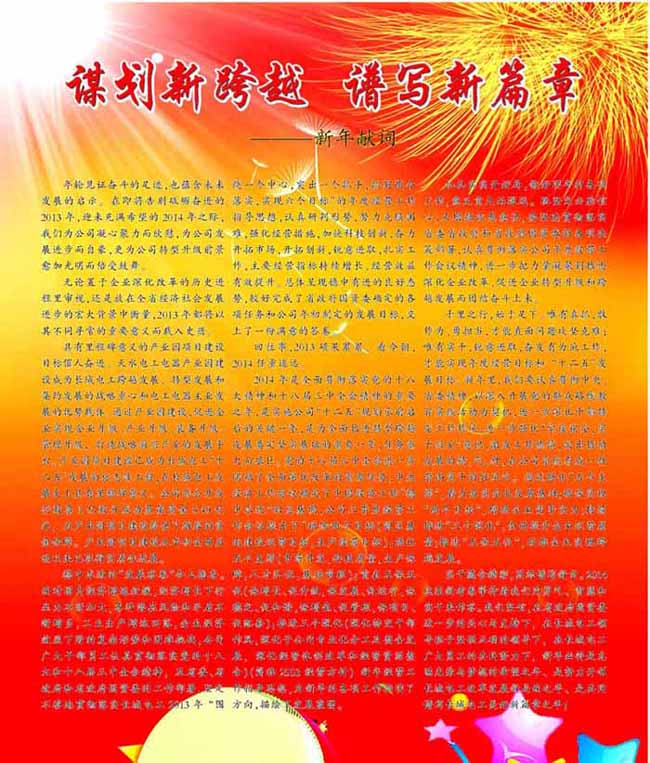 年輪見證奮斗的足跡,也蘊含未來發(fā)展的啟示。在即將告別砥礪奮進(jìn)的2013年,迎來充滿希望的2014年之際,我們?yōu)楣灸木哿Χ牢,為公司發(fā)展進(jìn)步而自豪,更為公司轉(zhuǎn)型升級前景愈加光明而倍受鼓舞。